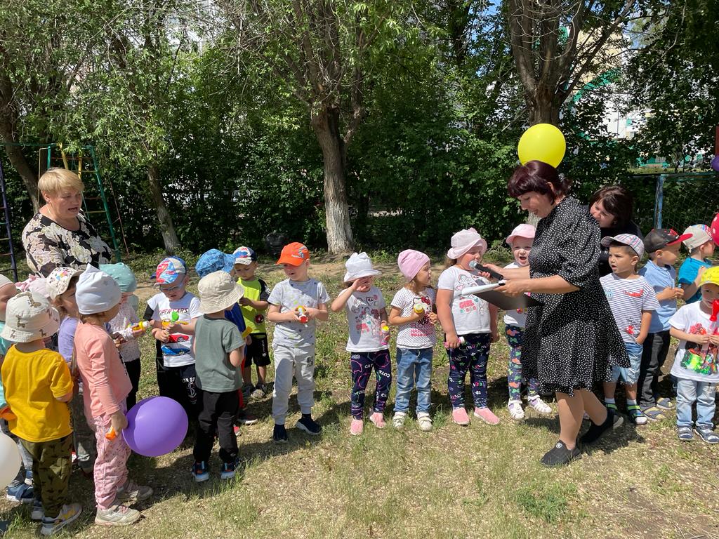 Радостно, звонко и красочно прошёл главный праздник детства – День защиты детей в нашем детском саду №59 «Дружба». Мы постарались в этот день создать праздничную атмосферу и порадовать детей весёлыми играми, песнями, плясками. Спортивную площадку украсили разноцветными воздушными шарами, звучала весёлая музыка, поднимая весёлое настроение у детей, родителей, педагогов. К детям пришли в гости сказочные персонажи: Чебурашка и Лето, с ними пели детские песни, играли в весёлые игры и эстафеты, подарили детям хорошее настроение. Было приятно видеть радостные детские лица и слышать весёлый детский смех. |