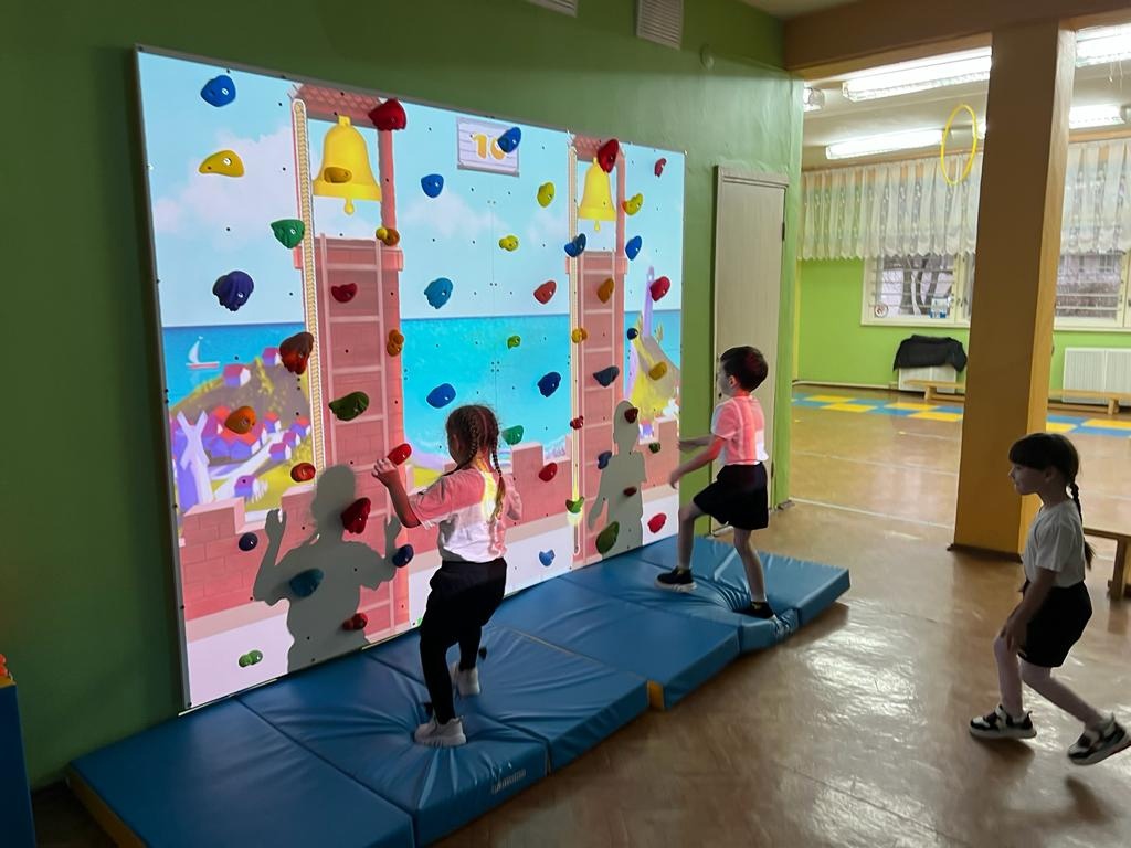 Опубликовано: 03.11.2023Сегодня на занятии по физической культуре воспитанники старшей группы № 2 тренировали зрительное внимание, развивали ловкость и координацию движений через интерактивную игру "Спаси город" , с использованием интерактивного скалодрома, приобретенного при поддержке БФ "Татнефть".