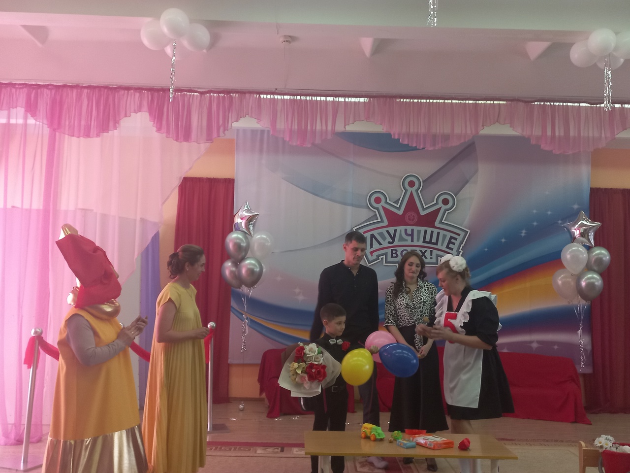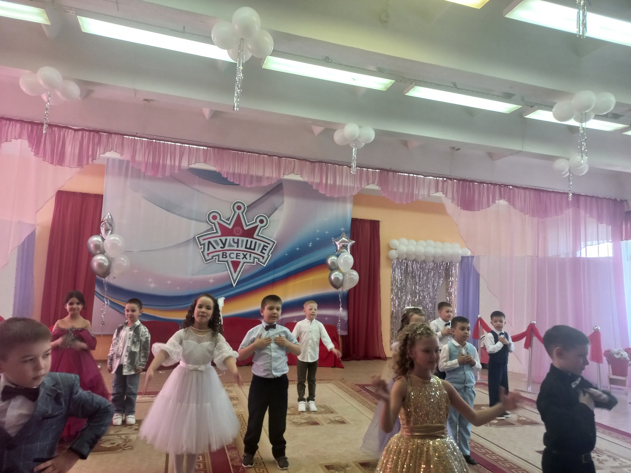 Начался праздник оригинально с сообщения охранника об акции-митинге наших выпускников, их нежелании покидать любимый сад и требованием открыть группу "выпускники". Так дети с искренними эмоциями показали как им дороги друзья, педагоги и, что наш детский сад-самый лучший, потому что наши ребята, наши воспитатели и наши родители-САМЫЕ ЛУЧШИЕ! Актёр в образе охранника пригласил поучаствовать в шоу "Лучше всех" и показать, чему дети научились в детском саду. Были исполнены оригинальные танцы, песни, театральные миниатюры из жизни садика и, конечно, прощальный вальс.