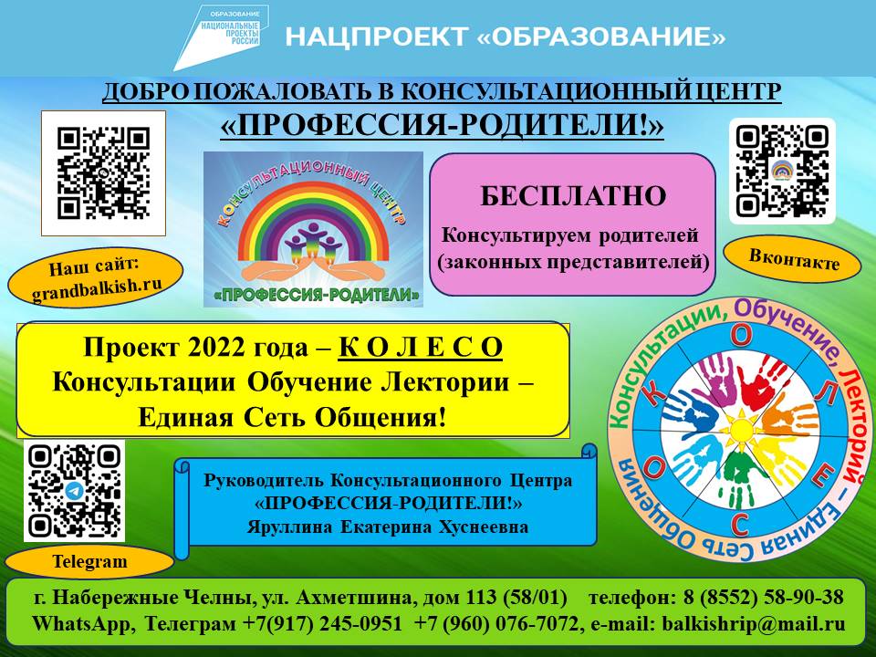 Проект Консультационного Центра «ПРОФЕССИЯ-РОДИТЕЛИ!» 2022 года – КОЛЕСО (Консультации Обучение Лектории – Единая Сеть Общения)