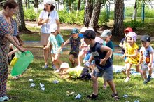 Лето – это прекрасная пора, которая позволяет детям на продолжительное время получить заряд энергии, бодрости и здоровья. Прогулки на свежем воздухе - самый лучший период общения дошкольников с природой, прекрасное время для проведения игр и оздоровительных мероприятий. «Летние старты»- под таким названием прошли спортивные соревнования в нашем детском саду. Дошколята с удовольствием соревновались в конкурсе «Бег змейкой», «Бег в парах», «Удержи равновесие», «Меткие стрелки», «Смотай верёвочку»...Участвуя в «Летних стартах», дети почувствовали: чтобы завоевать победу – мало быть просто физически сильным, необходимо при этом обладать достаточно целеустремлённостью, силой воли, быть ловкими и находчивыми.Спортивные соревнования учат детей в игровой форме быть смелыми, помогать друзьям и проявлять настойчивость. Веселые конкурсы превращают даже обычную летнюю прогулку в детском саду в увлекательное и интересное путешествие. Спортивные игры способствуют подъему соревновательного духа у детей, умению преодолевать трудности и получать удовольствие от спортивной нагрузки.Дошколята получили заряд бодрости, веселья, массу положительных впечатлений и самое главное, хорошее настроение!В итоге, конечно же, победила дружба! -