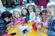 Шествие закончилось небольшим митингом и праздничным концертом, на котором наши маленькие герои прочитали стихи, исполнили легендарные песни «Бескозырка белая», «Катюша»