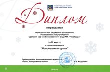 13.01.2016 года нашему ДОУ торжественно вручили дипломом за III место в городском конкурсе "Новогодняя игрушка". Поздравляем! 14.01.2016