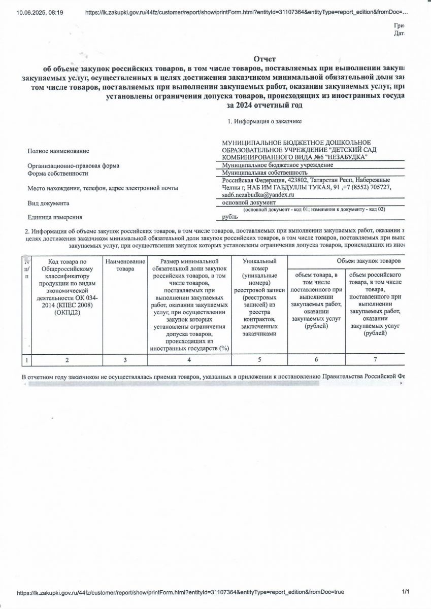 Короткое название: МБДОУ "Детский сад комбинированного вида №6 "Незабудка"