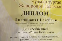 Наши юные артисты - участники дуэта "Алёнушка" стали Дипломантами 1 степени Открытого Всероссийского вокального фестиваля-конкурса "Чулман тургае - Жаворонок Закамья". Браво!
