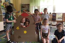 Дети старшей группы вместе с воспитателем создали космическую ракету для проведения сюжетно – ролевых игр.