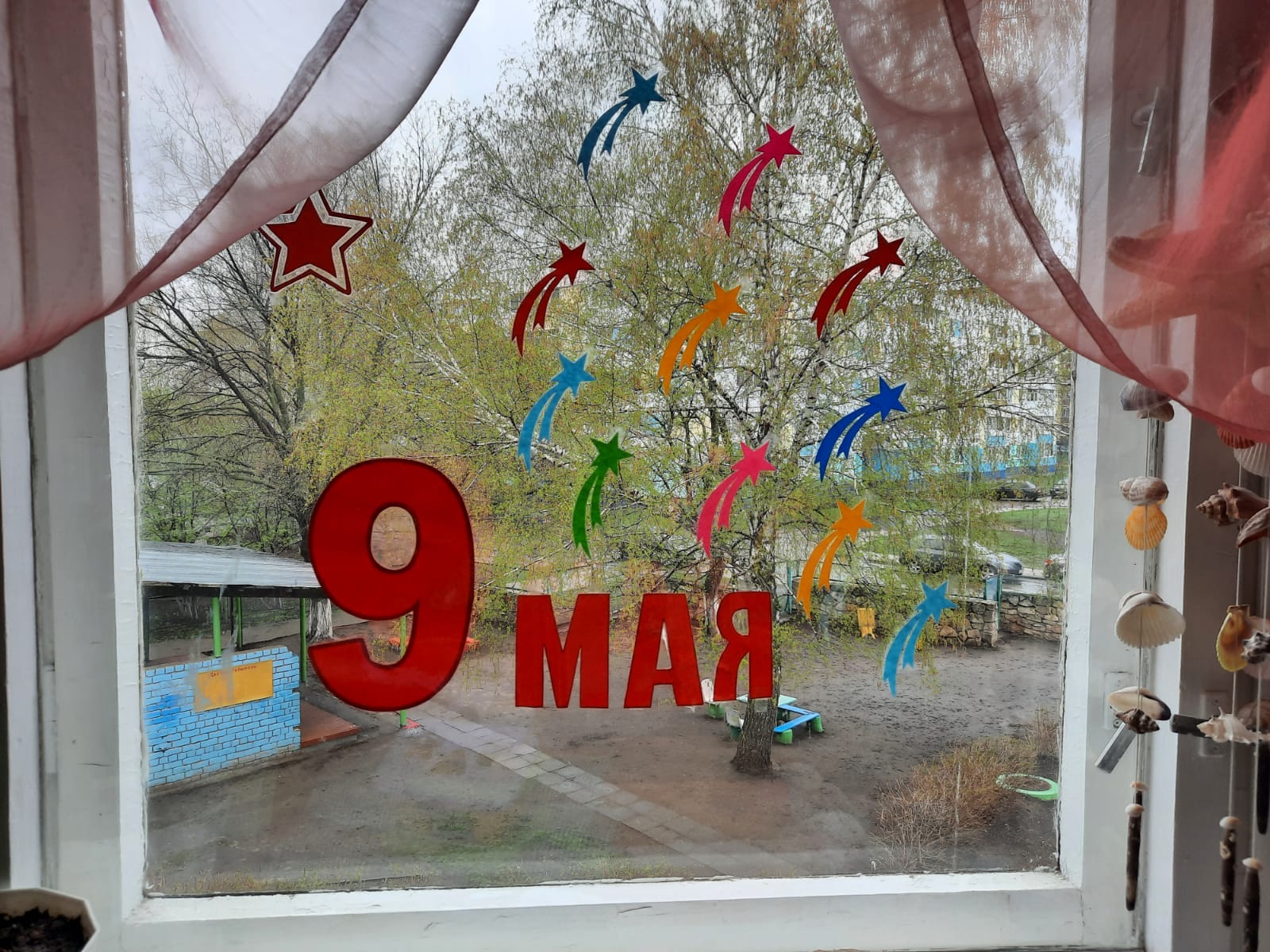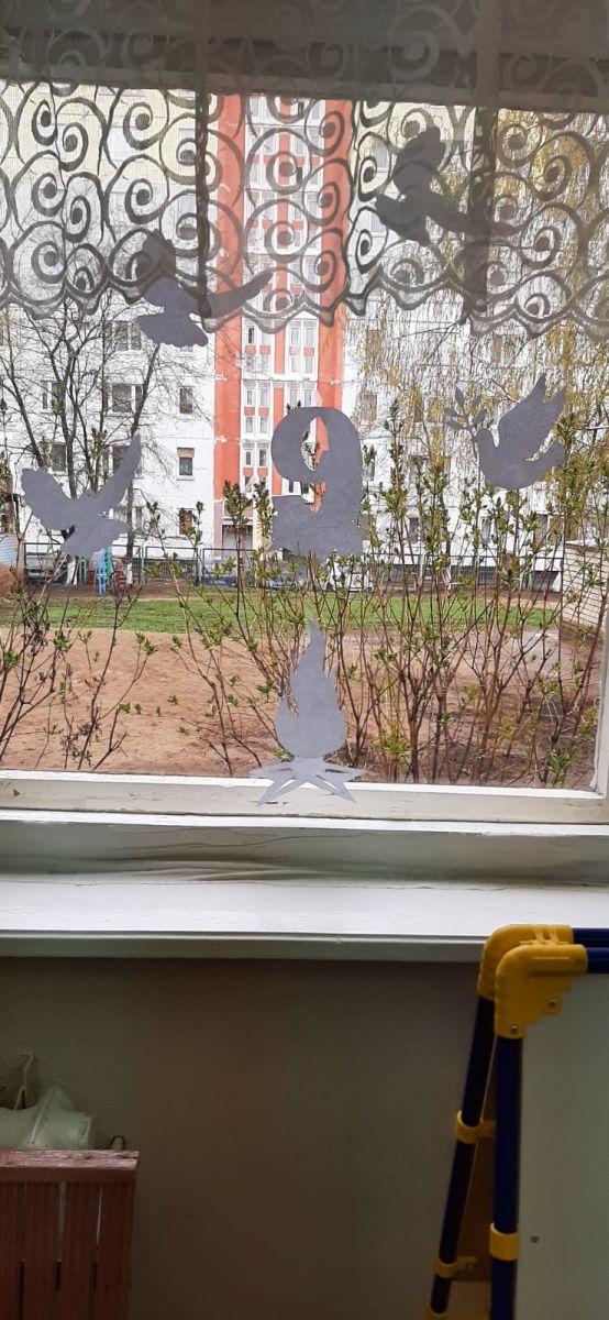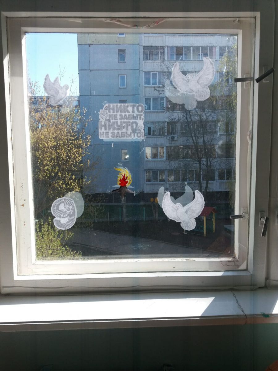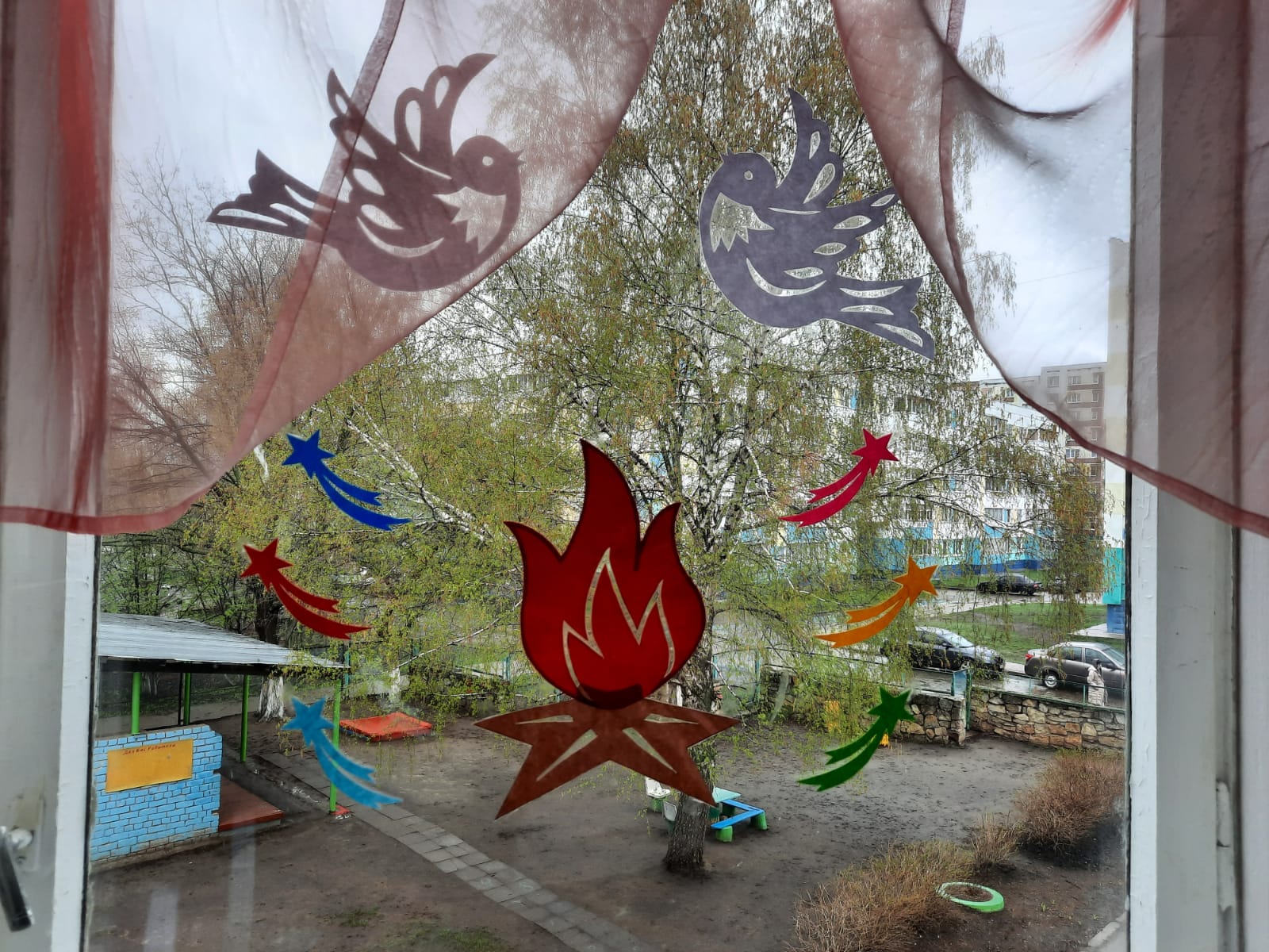 Флешмоб «Окна Победы», посвященный Дню Победы. Украшаются окна в групповых помещениях ДОУ и окна квартир воспитанников ко Дню Победы изготовленными руками детей и родителей символами Победы.