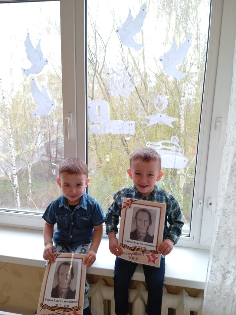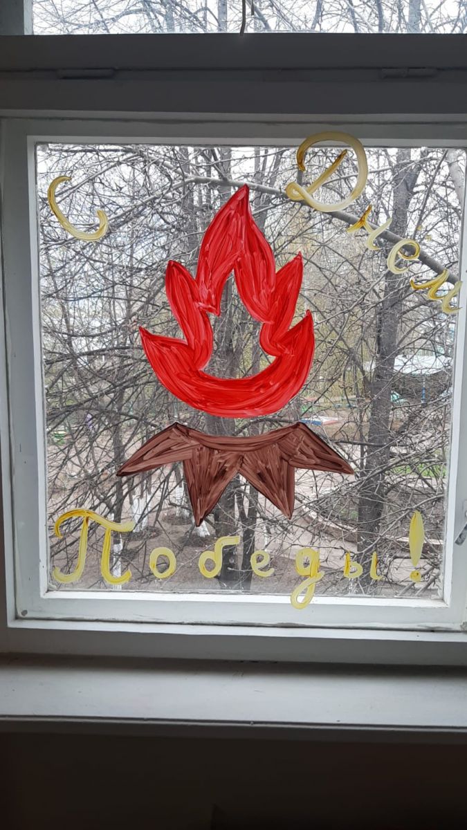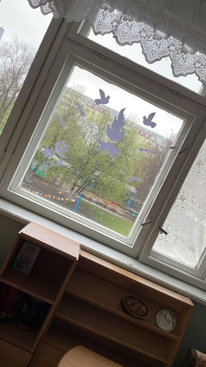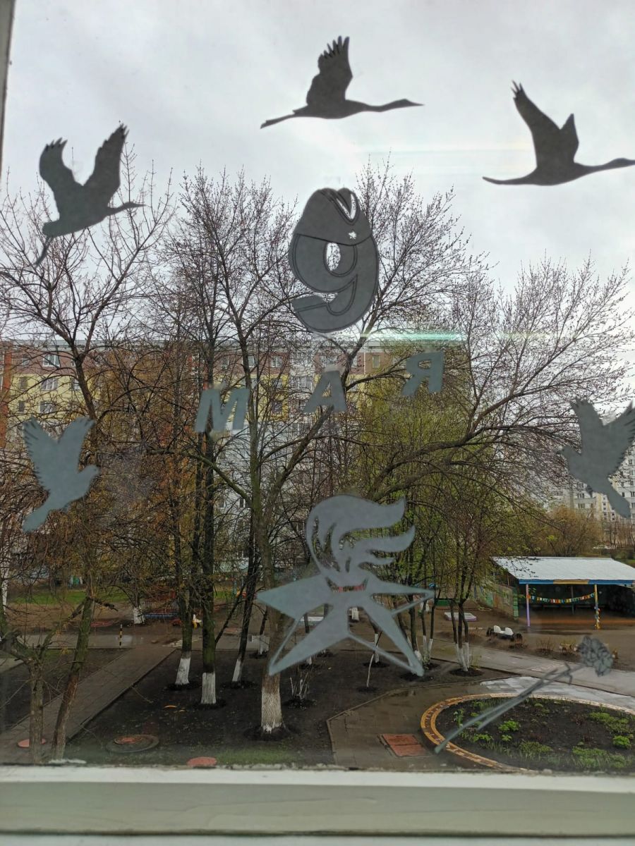 Флешмоб «Окна Победы», посвященный Дню Победы. Украшаются окна в групповых помещениях ДОУ и окна квартир воспитанников ко Дню Победы изготовленными руками детей и родителей символами Победы.
