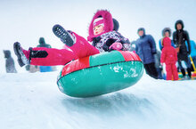 Тюбинг (ватрушки) развивают самую высокую скорость и абсолютно неуправляемы. На них можно кататься только на специальных трассах, организованных и в идеале со спасателями, следящими за очередностью спуска и за тем, чтобы те, кто уже внизу, сразу освобождали трассу. Если катаетесь на неорганизованной горке, следите сами за тем, чтобы никто не ехал толпой, в сцепках, чтобы, если кто-то свалится с ватрушки, он успел уйти со склона. Помните об общем правиле — пока спуск не освободился, следующий не едет. Горка для тюбинга должна быть пологой, не более 20-30 градусов, с долгим плоским съездом. Ватрушка должна быть в меру накачанная (не сдувшаяся и не тугая до звона), сидит на ней один человек, ногами вперёд, держится за ручки.