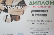 Воспитанница нашего детского сада стала дипломантом второй степени городского конкурса чтецов "Туган тел", проводившегося в Дворце культуры "Камаз"