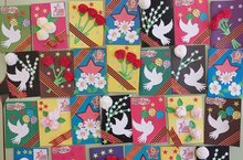 Ребята совместно с родителями изобразили картины сражений, Вечный огонь, который украшает наш город, солдат-освободителей, белых голубей, салют и т. д.