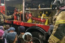 Сотрудники пожарной части показали специальную пожарную технику и пожарно-спасательный инвентарь, показали предметы специальной одежды.