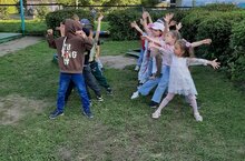 Весело и беззаботно ребята группы № 1 проводят солнечные осенние деньки. Хорошая погода, активные спортивные игры и веселая компания - всë, что нужно для счастливого детства.