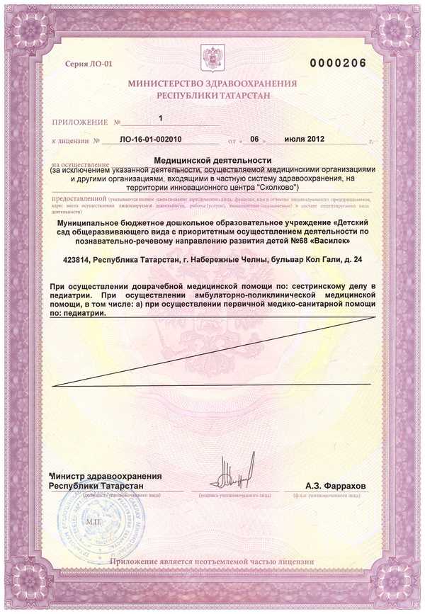 Лицензия на медицинскую деятельность, Приложение