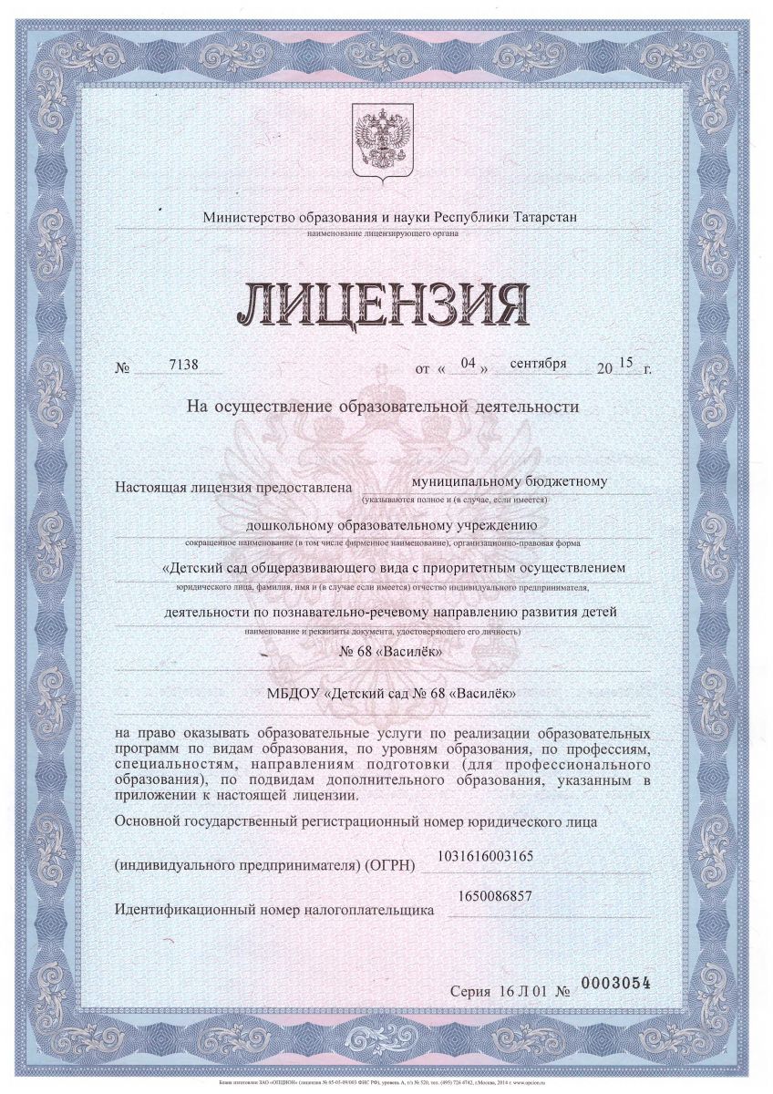 Муниципальное бюджетное дошкольное образовательное учреждение «Детский сад общеразвивающего вида с приоритетным осуществлением деятельности по познавательно-речевому направлению развития детей №68 «Василёк» г. Набережные Челны / Яр Чаллы шәһәренең «Күкчәчәк» 68 нче балаларның танып белү-сөйләм үсешен өстелекле гамәлгә ашыручы гомүмүстерешле балалар бакчасы» муниципаль бюджет мәктәпкәчә белем бирү учреждениесе