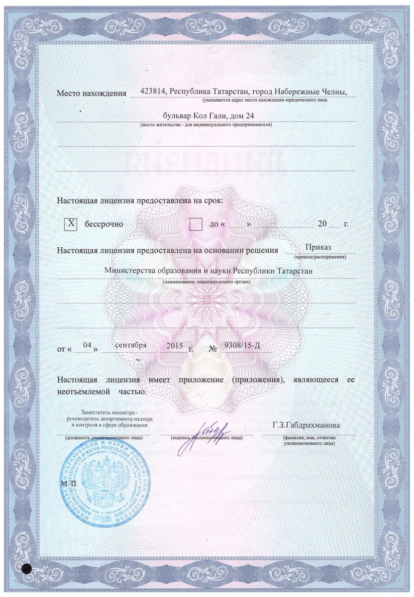 | Адрес: | 423814, Республика Татарстан, г. Набережные Челны, б-р Кол Гали, д. 24 (58/06). Структурное подразделение: пр.Московский д.79 (9/22) |