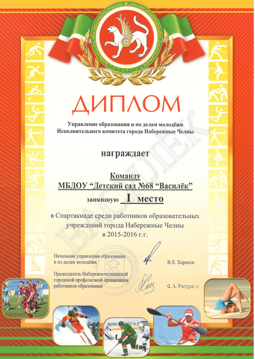 Наш детский сад участвует   в смотре художественной самодеятельности среди работников дошкольных учреждений, в 2017 году Дуэт "Ике йолдыз" ("Две звезды") - Усманова Альфия Ханнановна и Шайхутдинов Шамиль заняли 3 МЕСТО!!! В 2019 - 2023 гг. Ягудина Светлана Эркиновна в составе ансамбля "Радость" получила дипломы I-III степени Активно принимаем участие в городских соревнованиях: «Кросс Татарстана», «Лыжня Татарстана», «День физкультурника», «Камский веломарафон», соревнованиях по плаванию, шахматам, стрельбе, настольному теннису, лыжным гонкам (Татьяна Аркадьевна является  победителем), волейболу. По итогам 2015-2016 учебного года наш коллектив занял почетное 1 место   в Спартакиаде среди работников образовательных учреждений, в 2016-2022 учебном году выступили слабее,занимали как призовые места, так и были в первой 10 - ке.