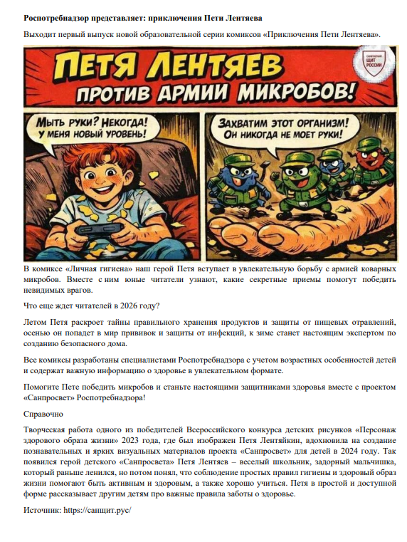 В детском саду прошла неделя санитарного просвещения. И знаете, кто стал её главным героем? Не доктор Айболит и не Мойдодыр, а самый обычный мальчик — Петя Лентяев!