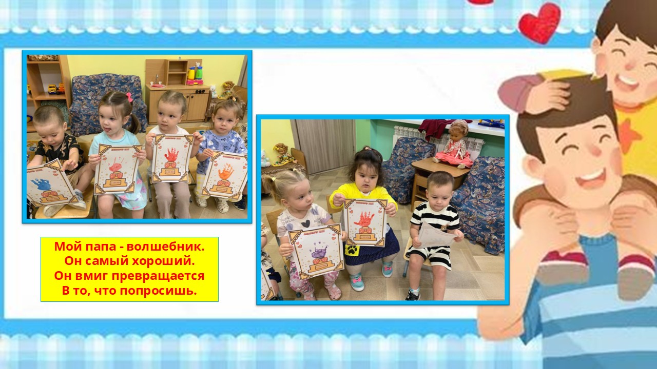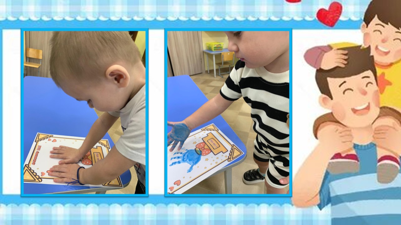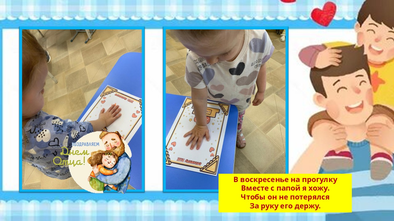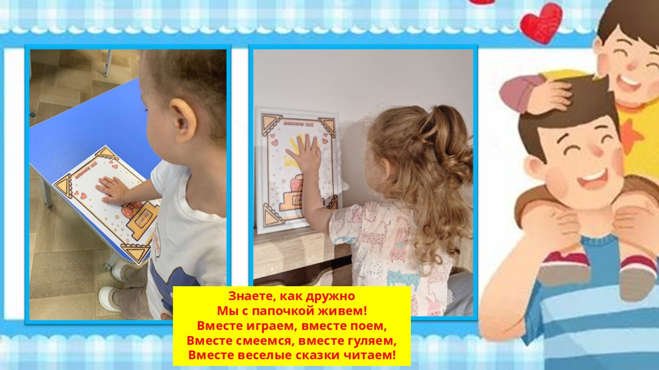 Маленькие ладошки сыновей и дочерей, оставленные ими на рисунках, пусть станут символом нежной детской привязанности и любви к отцам.