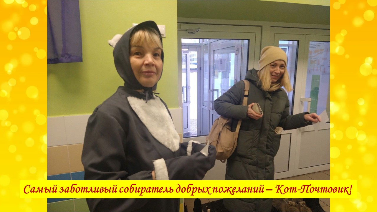 Кот-Почтовик встречал всех родителей с приветствиями и с самыми добрыми пожеланиями, а также предлагал всем мамам, папам, бабушкам и дедушкам присоединиться к участию в самом волшебном событии под названием «День добрых пожеланий».