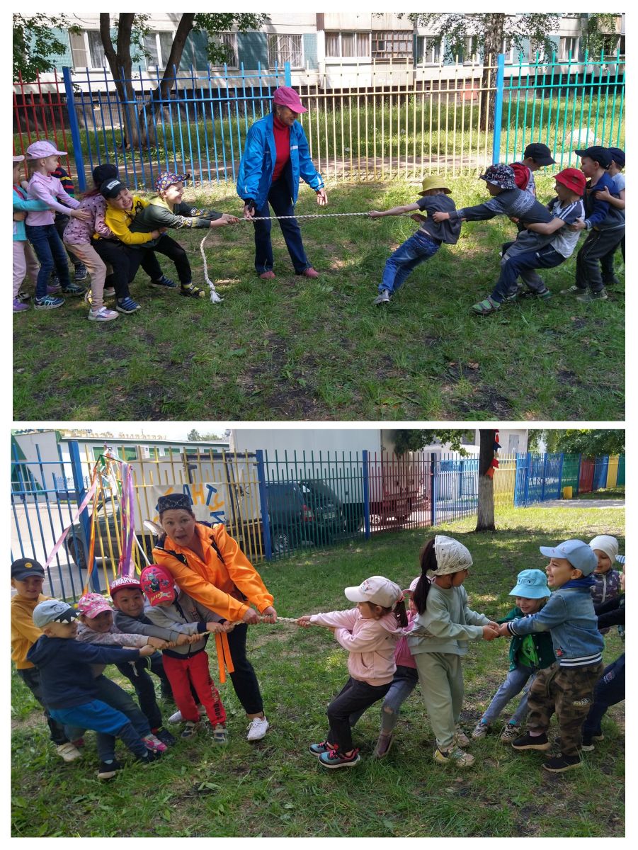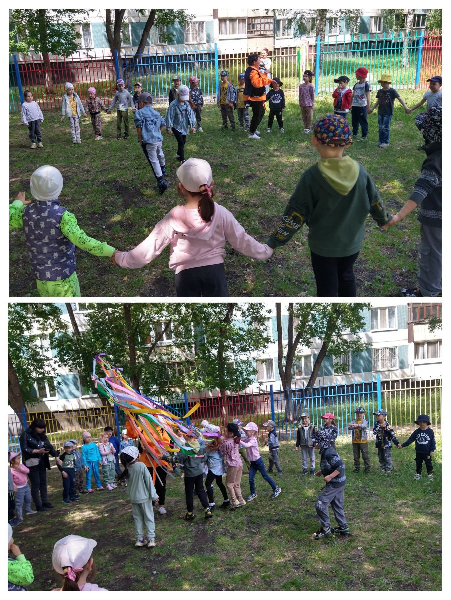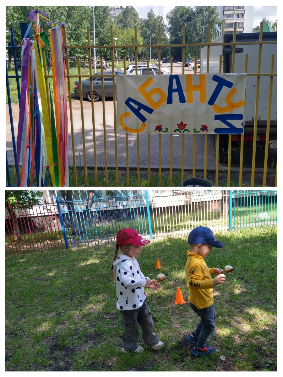 Сегодня в Детском саду № 69 «Радуга» очень оживленно и радостно, всюду звучит музыка. Главные затейника праздника Батыр и Красавица Сабантуя заглянули в каждую группу и ярко зазывали ребят, приглашая на праздник. Все ребята собрались в музыкальном зале, где с Батыр и Красавицей Сабантуя рассказали откуда к нам пришел праздник и как его отмечают. А еще все дружно посмотрели интересный мультфильм «Сабантуй», откуда ребята узнали какие состязания бывают на самом празднике. Ну и как же Сабантуй без веселых состязаний?! Батыр всех пригласил на спортивную площадку посоревноваться и показать свои ловкость, силу, быстроту и смекалку в забавных играх. Ребята ловко справлялись с прыжками в мешках, перетягивали канат, меряясь своей силой, играли в татарскую народную игру «Курай», переносили яйца в ложке, скакали на лошадях. Ведь только на Сабантуе можно соревноваться кто быстрее наполнит ведро, таская воду в решете. Наши ребята, не только сумели перетаскать воду в решете, но и наполнили ведра с водой.