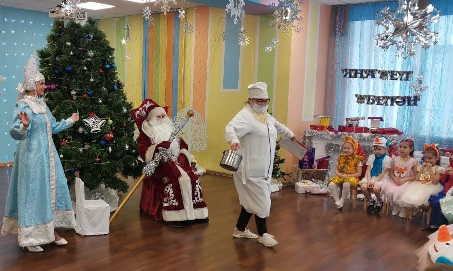 Новый год, новый год, детвора встречает.В детском саду в предверии Нового года прошли новогодние утренники. Малыши превратились в лисичек и мишек, а ребята постарше показали сказочки "Зайчиха-портниха" и "Муха Цокотуха". Но на этом чудеса не закончились. Ребята вместе с Айболитом, Снегурочкой и учителем пения Петухом лечили Дедушку Мороза, который потерял голос, потому что целый год не поздравлял всех ребятишек и родителей с Новым годом! А на Шоу талантов даже Баба яга подала заявку и веселилась на празднике вместе с ребятами.