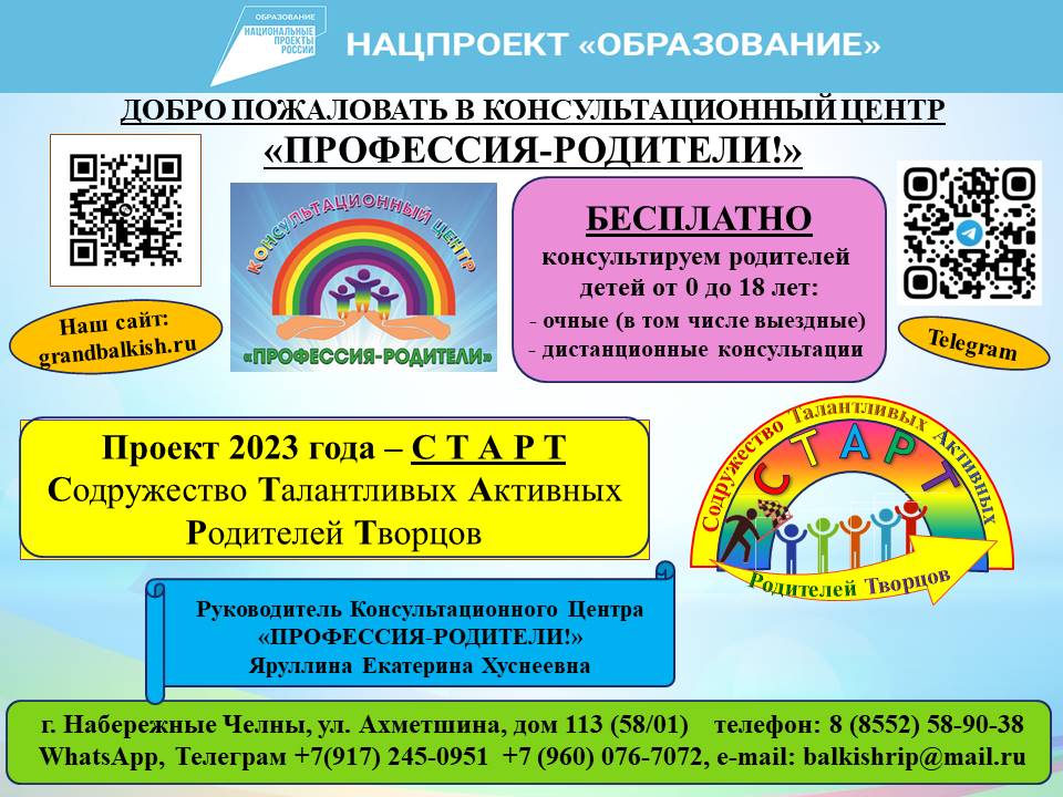 В 2023 году консультационный центр реализует проект "С Т А Р Т" (Содружество Талантливых Активных Родителей Творцов)