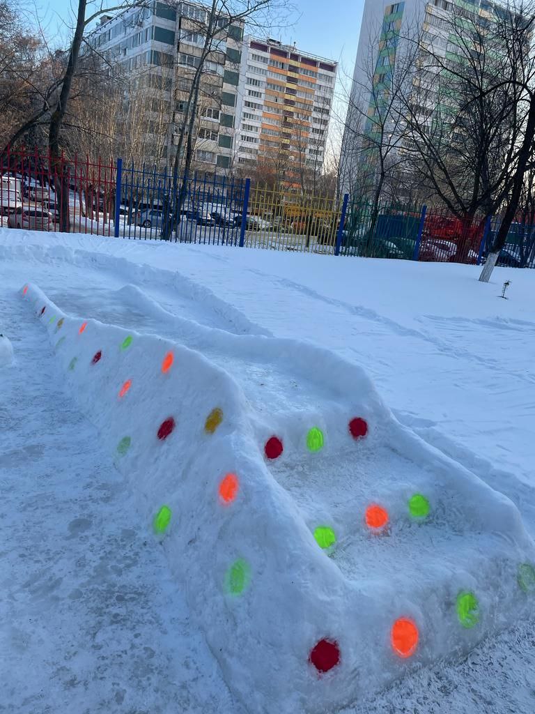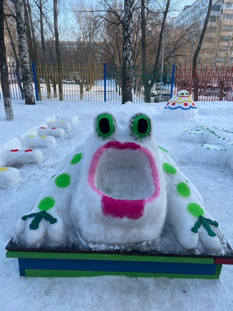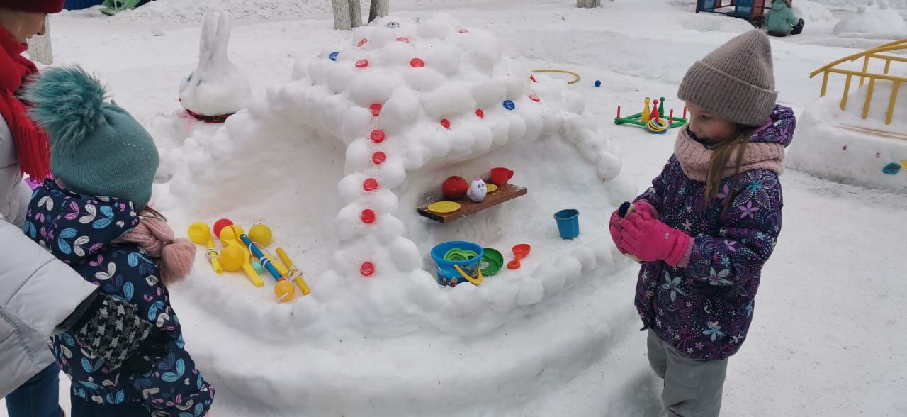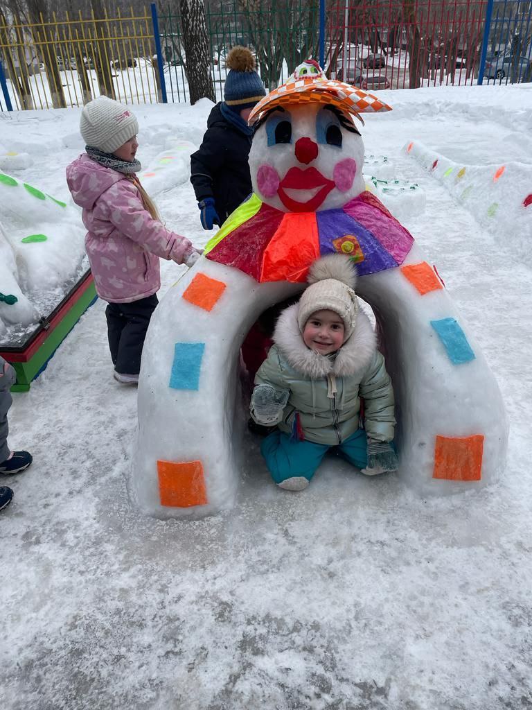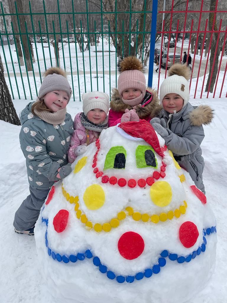 На ней кататься мы хотим!Зима славится не только снежной красотой и морозами, но и веселыми затеями! Ведь только из снега можно всем вместе и дружно построить горку для малышей, слепить снежного крокодила или гигантского Зайку, а веселый клоун в шляпе будет поднимать всем настроение! Только в нашем саду можно готовить обед в ледяной печи! А еще при входе в детский сад на площадке группы № 7 всех радостно встречает верный страж Зимы - Снеговичок. Посмотреть удивительные зимние постройки, созданные руками талантливых родителей и педагогов можно здесь: "Зимние забавы"