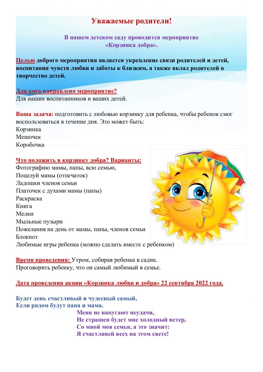 ВНИМАНИЕ, АКЦИЯ "КОРЗИНКА ДОБРА И РАДОСТИ" 19.09.2022