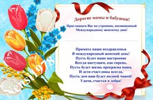 Приглашаем дорогих мам и бабушек на праздник, посвященный Международному женскому дню 8 Марта.