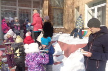В детском саду прошло спортивное развлечение "Солдатская каша" с участием родителей, посвященное Дню защитника Отечества. Дети вместе с папами проходили полсу препядствий, минное поле, "воздушный бой", перетаскивали "раненых бойцов". Дегустация "Солдаткой каши" порадовала не только детей, но и взрослых.