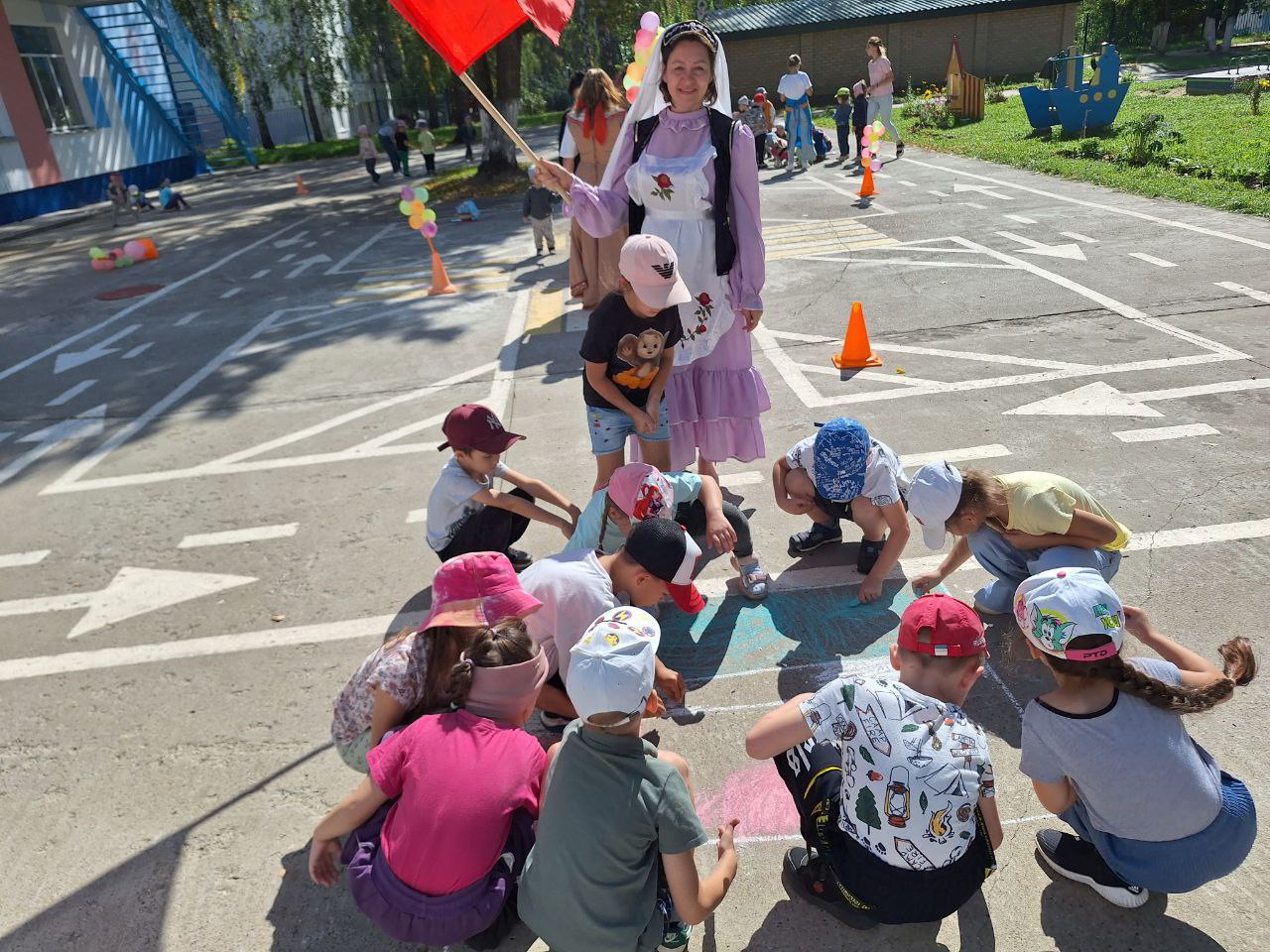 Все, от мала до велика стали участниками праздника, никто не остался в стороне: танцевали, изучали, радовались солнечной погоде и хорошему настроению! И завершился праздник дружным рисованием мелками на асфальте главного символа Республики Татарстан –флага!.jpg)
