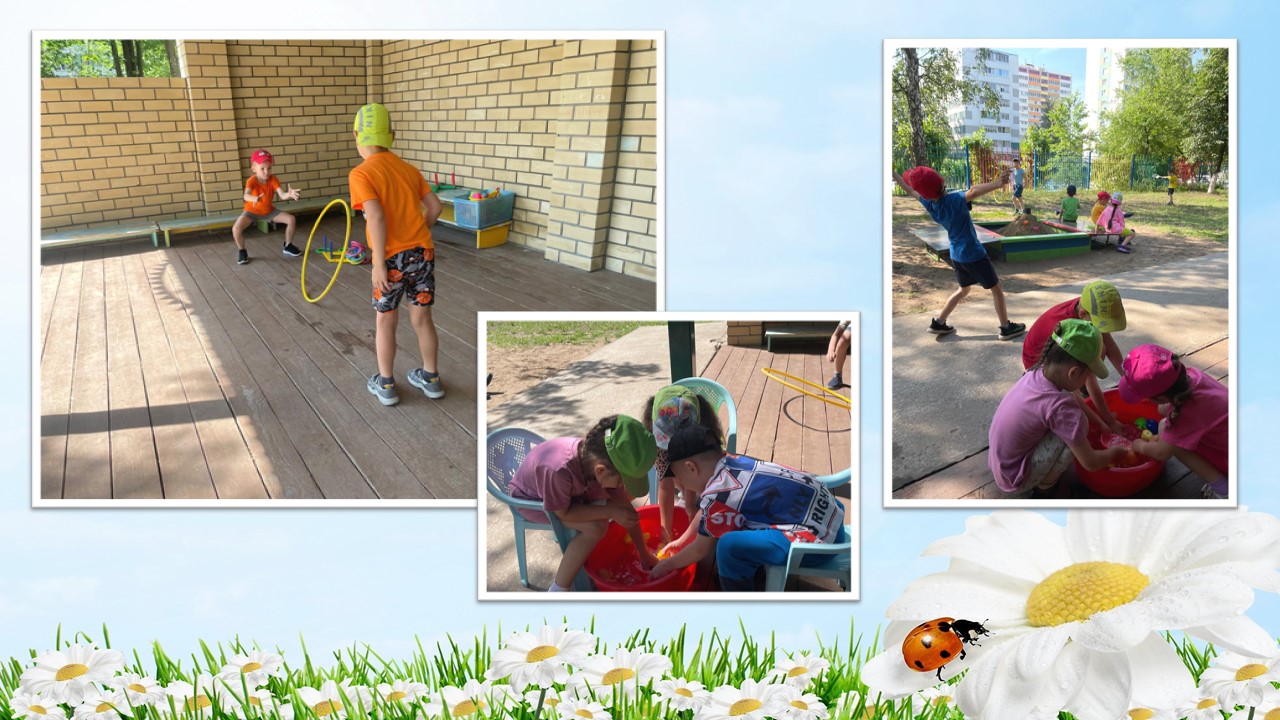 Столько интересного происходит: игры с водой, мячами, да и просто веселые подвижные игры с героями!