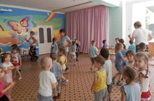 лето в детском саду 13.07.2016 игра в "классики" - дети 1 группы