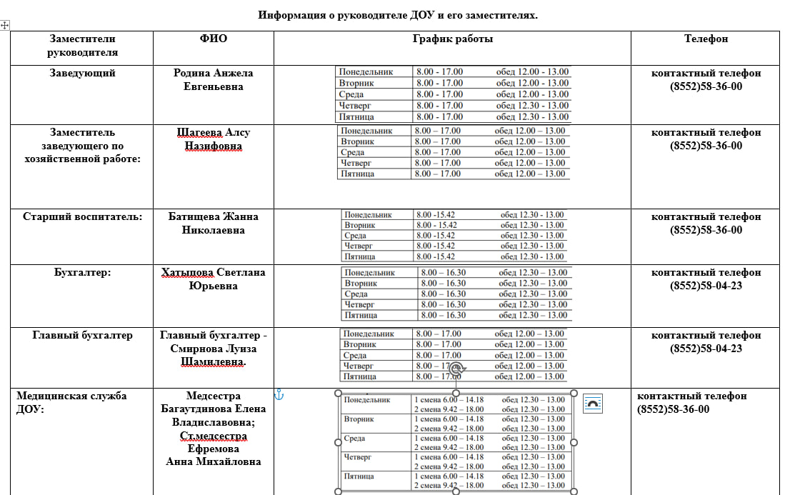 Непосредственное управление Детским садом осуществляет заведующий, Родина Анжела Евгеньевна, телефон/факс +7(8552) 58-36-00, е-mail: sad69raduga@mail.ru