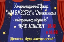 Уважаемые родители! Консультационный Центр "Мы вместе!" приглашает вас с детьми на увлекательный мастер-класс от наших партнеров Детской школы театрального искусства, который состоится 26.10.2022г. в 10.00. Мы всегда рады видеть вас в нашем детском саду!