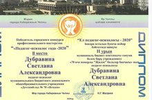 Поздравляем Дубравину Светлану Александровну, занявшую 2 место в городском конкурсе профессионального мастерства среди педагогов - психологов дошкольных учреждений и школ города.