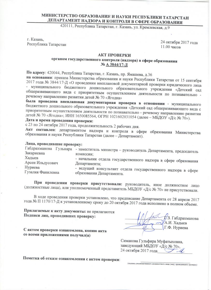 Акт проверки органом государственного контроля (надзора) в сфере образования № А 3844/17-Д