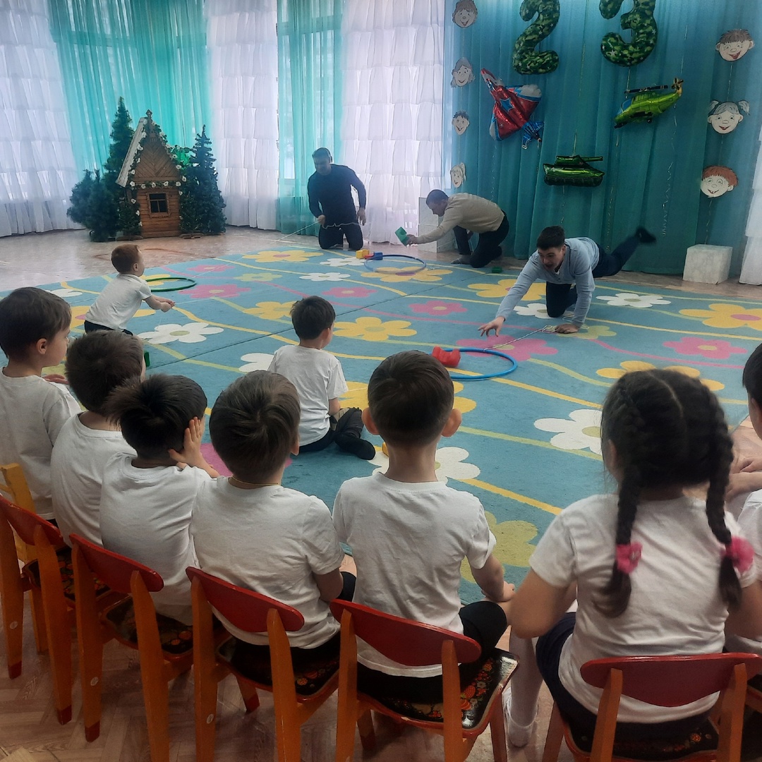 Сегодня воспитанники ДОУ с папами приняли участие в спортивном соревновании, дети подготовительных к школе групп, пели патриотические песни, читали стихи о Родине. Ребята подарили подарки своим папам и дедушкам, в честь Дня Защитника Отечества!