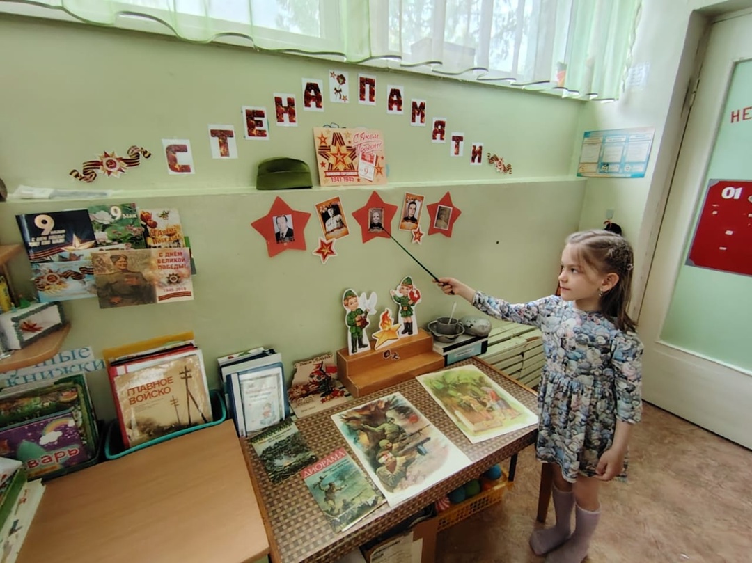 Важно помнить о подвигах своих прадедов и прабабушек. Об этом в старшей группе номер два проводятся беседы, родители и воспитатели с удовольствием предоставили фотографии, книги и другие материалы. В подготовительной логопедической группе номер семь, педагоги и воспитанники изготовили книгу о пионерах-героях Советского Союза.