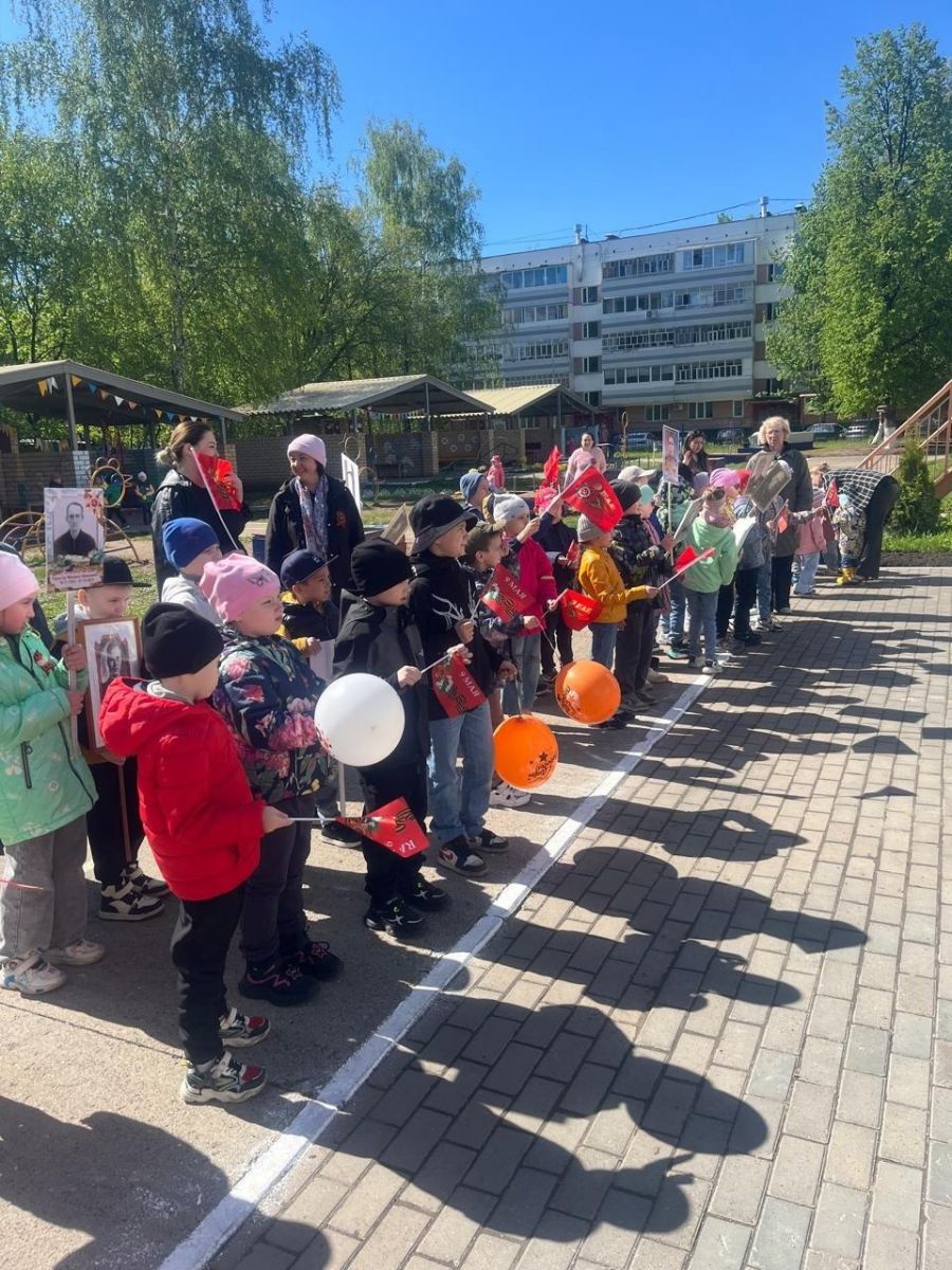 До дня Победы осталось два дня! Сегодня воспитанники нашего детского сада приняли участие в шествии Бессмертного полка в соседнем детском саду "Теремок". Музей в логопедической группе 7 пополнился новыми экспонатоми, в том числе часть газеты военных лет. Воспитанники догопедической группы 6 подготовили стихи. Малыши группы 9 присоединяются к поздравлениям ветеранов. Наргиз и Эмир помнят и чтят своих прадедов, участников Великой Отечественной войны.