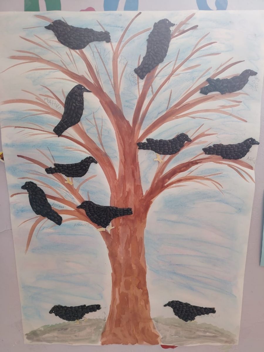 1 апреля, мы отметили день птиц. В старшей группе N 2 прошла тематическая неделя: воспитанники вспоминали названия птиц, беседовали о том, что необходимо заботиться о пернатых.подготовили коллективную работу "Скворцы прилетели" и аппликацию"Лебеди". Воспитанник группы N8 Данис с папой, постоянно подкармливают птиц, проходя мимо кормушки под нашей красивой елью.