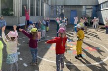 Вот и наш детский сад "Айсылу" не прошел стороной сабантуй. Праздничное мероприятие провели на свежем воздухе. На праздник к детям пришли герои татарских сказок – Батыр и Шурале. Вместе с детьми они играли в такие татарские народные игры, как «Бег с ложкой и яйцом», «Конные скачки», «Бег в мешках», «Разбивание горшка», «Бег с коромыслом». Дети пели песни и танцевали.