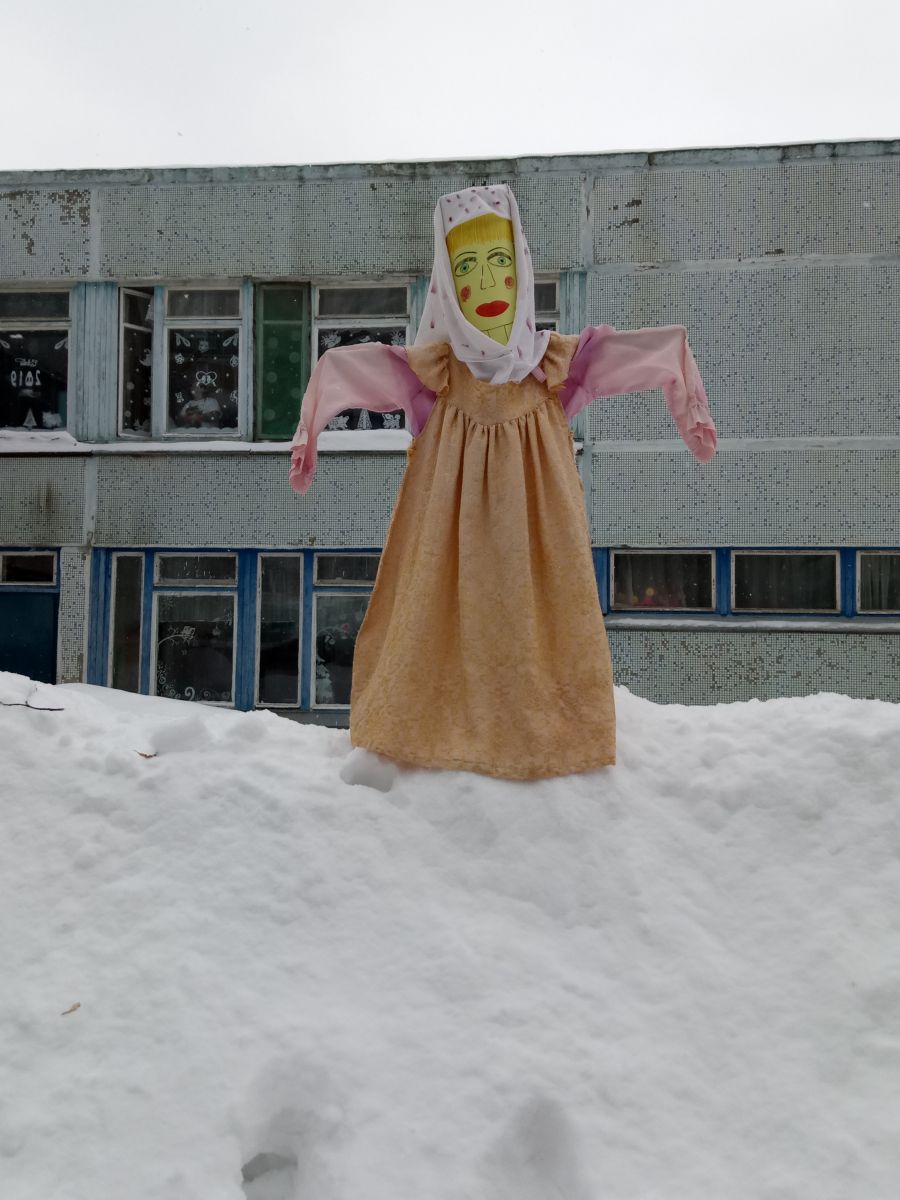 В качестве чучела, которое приносится в жертву, изготавливали большую смешную и в то же время страшную куклу, олицетворяющую собой Масленицу. Делали куклу из тряпок и соломы. После чего её наряжали в женскую одежду и оставляли на главной улице деревни на время Масленичной недели. А в воскресенье торжественно несли за пределы селения. Там чучело сжигали, топили в проруби или же разрывали на части, а солому, оставшуюся от него, разбрасывали по полю.