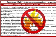 Отделение НДиПР по Автозаводскому району напоминает, что с приходом отопительного сезона необходимо обратить особое внимание на выполнение требований пожарной безопасности в жилых домах и квартирах, имеющих печное отопление, как при устройстве, так и при эксплуатации печей.