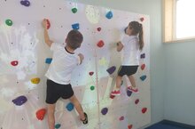 Интерактивный скалодром, приобретенный за счет средств гранта, полученного в рамках Конкурса на предоставление грантов РТ на развитие гражданского общества 2022 г.(Грант Раиса Республики Татарстан про поддержке Фонда президентских грантов) активно используется на занятиях по физической культуре среди дошкольников. .