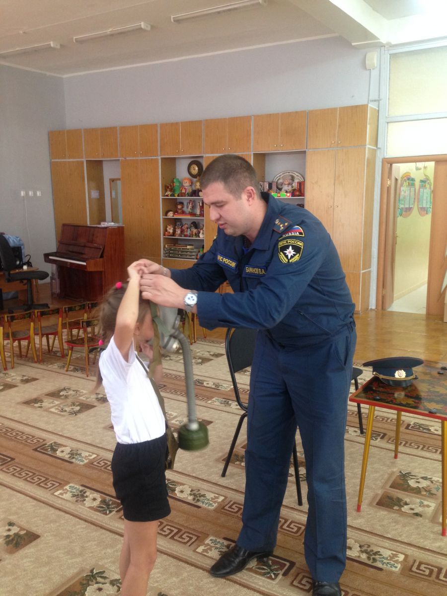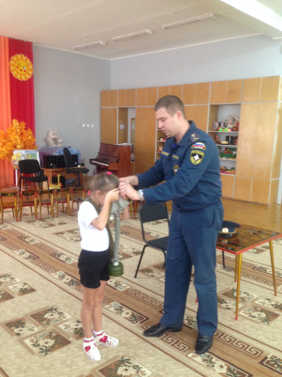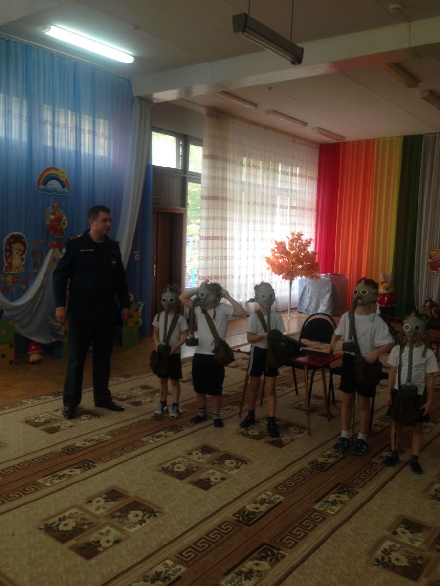 В детском саду прошло обучение персонала и воспитанников в области гражданской обороны и защиты от чрезвычайных ситуаций. В рамках данного обучения педагоги и дети ознакомились с инструкцией по эксплуатации противогаза, тренировались правильно надевать противогаз на время по команде «Газы»