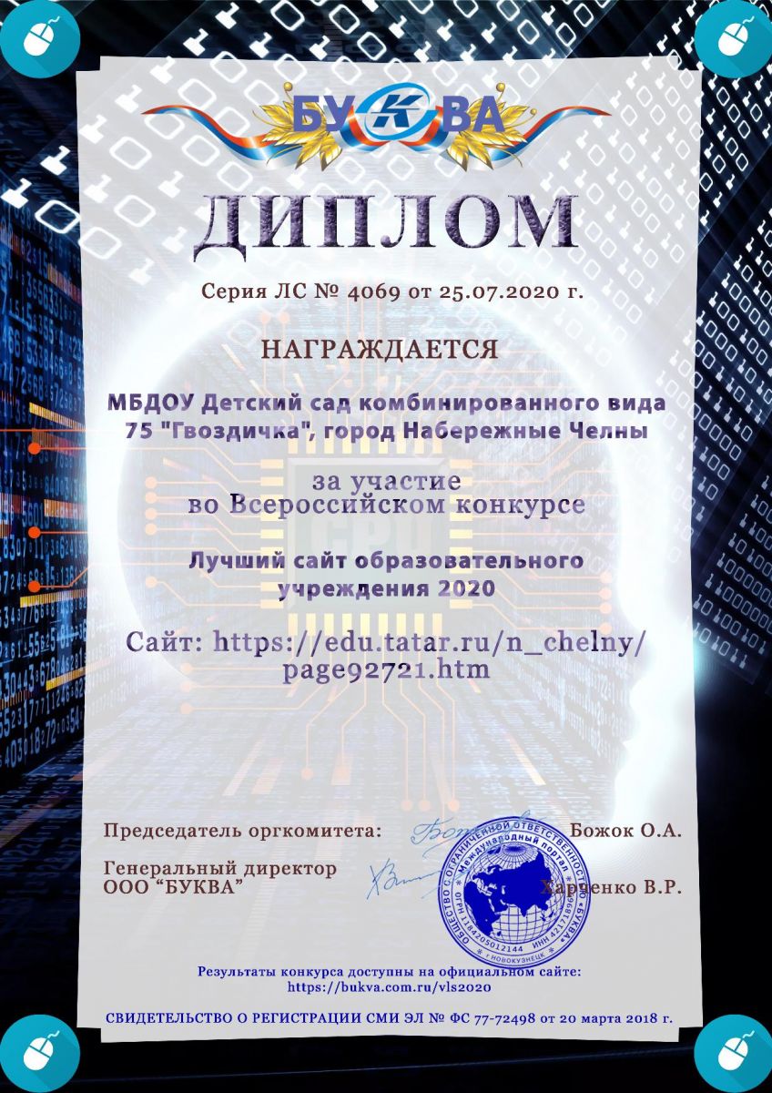 Муниципальное бюджетное дошкольное образовательное учреждение «Детский сад комбинированного вида №75 «Гвоздичка» г.Набережные Челны»/Яр Чаллы шәһәренең «Канэфер» 75 нчы катнаш төрдәге балалар бакчасы» муниципаль бюджет мәктәпкәчә белем бирү учреждениесе