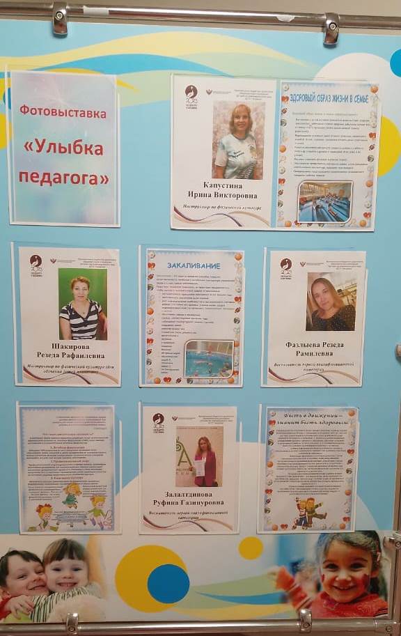 В нашем детском саду оформлена фотовыставка "Улыбка педагога", где представлены педагоги: