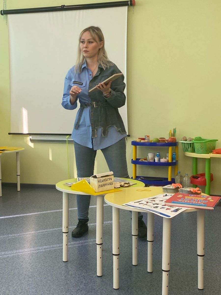 Алина Фаритовна поделилась своим ценным опытом работы, представив тему "Игры на развитие межполушарных связей для детей младшего возраста". Она продемонстрировала различные игровые методики, которые способствуют гармоничному развитию детей и укреплению их когнитивных навыков.